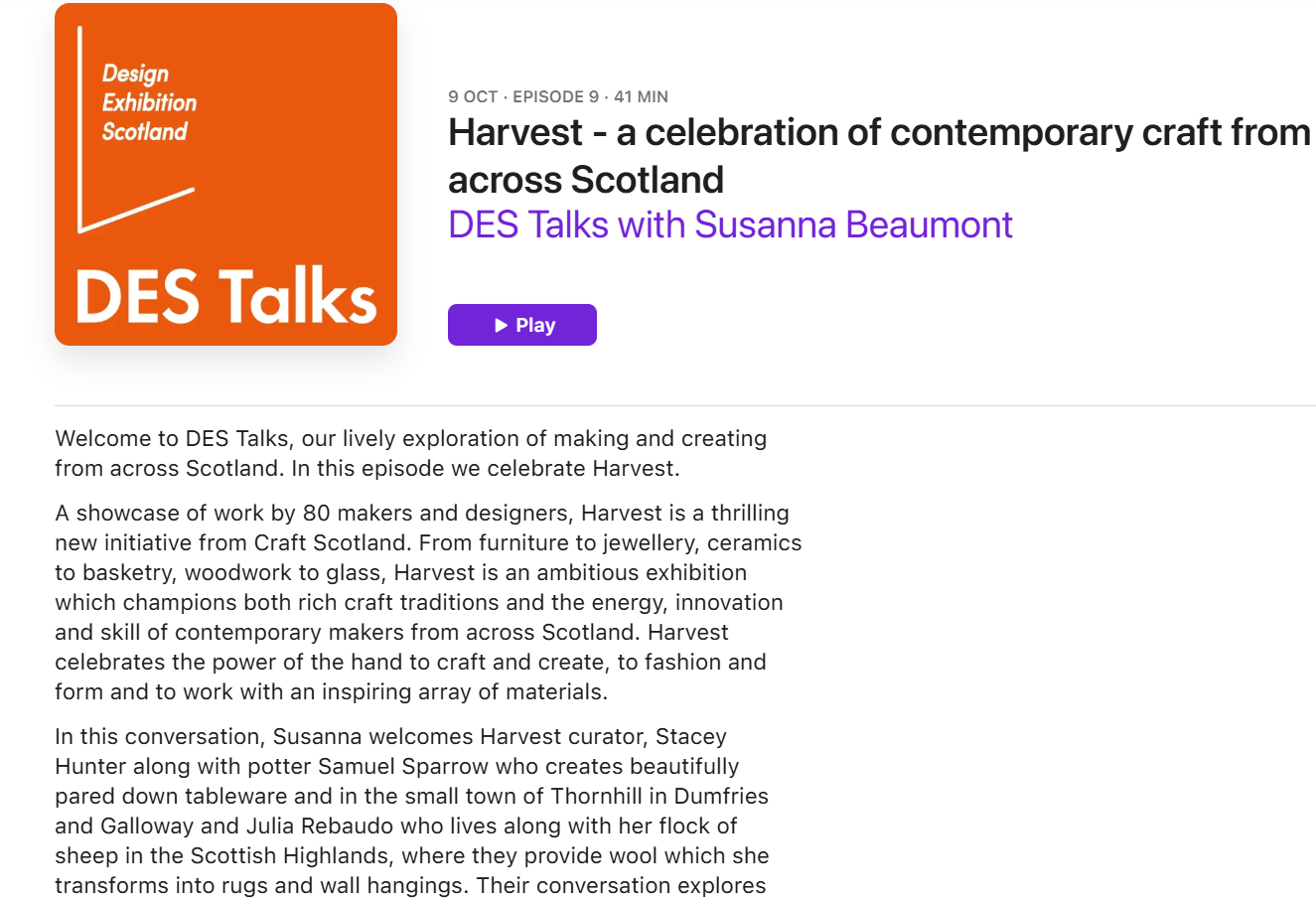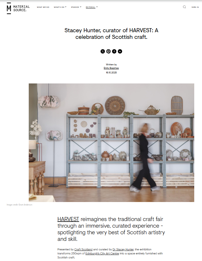 Material Source: Stacey Hunter, curator of HARVEST: A celebration of Scottish craft