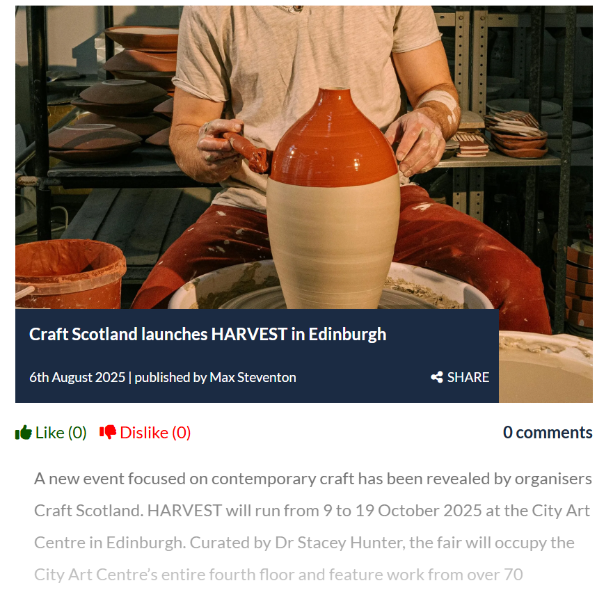 Exhibition News: Craft Scotland launches HARVEST in Edinburgh