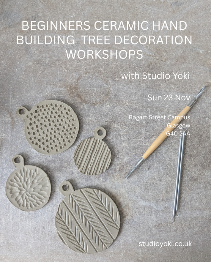 Discover how to hand-build your own set of three ceramic Christmas tree decorations in this engaging workshop. Over two and a half hours, I’ll guide you through the enjoyable process of creating unique decorations from clay.