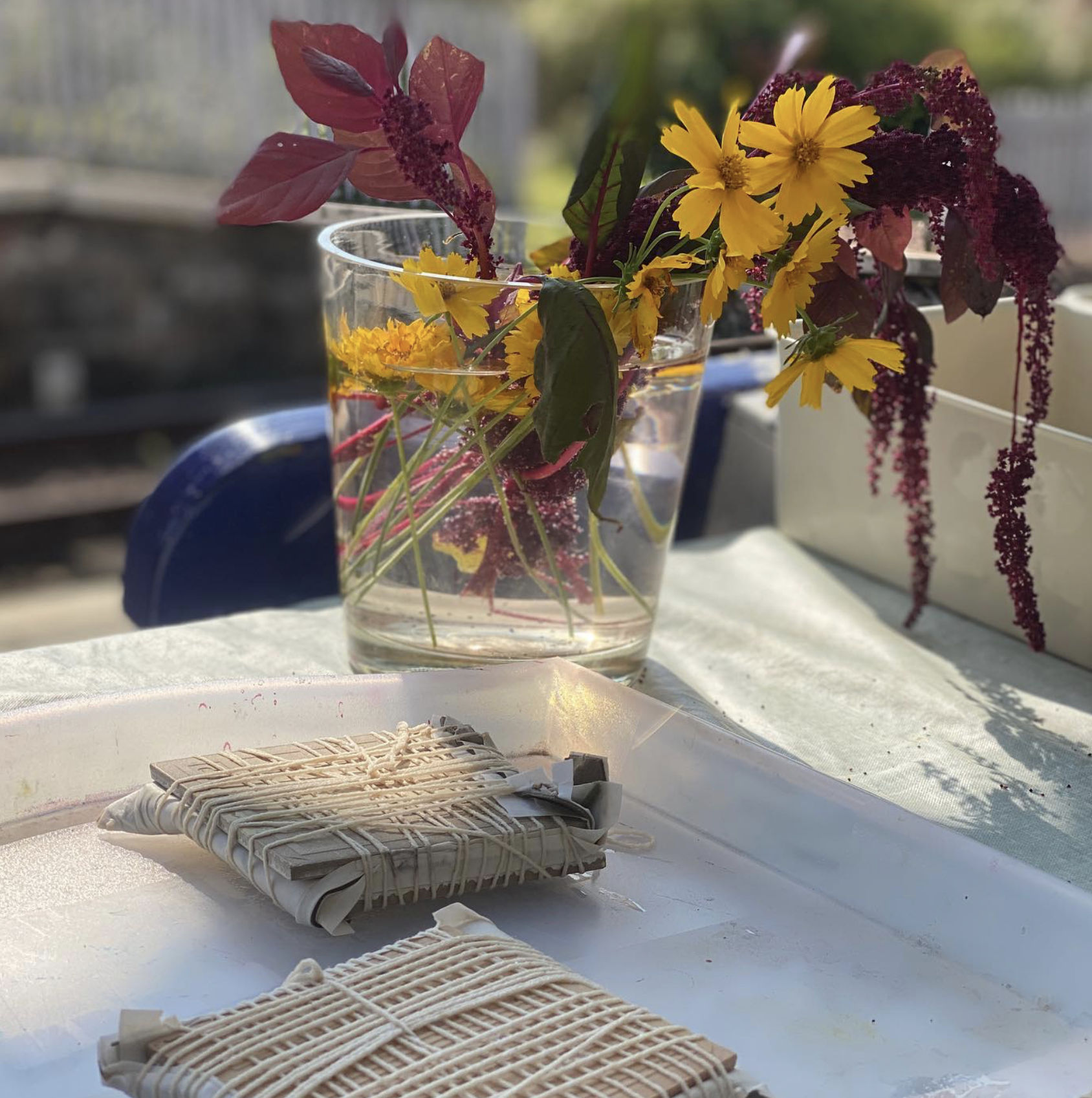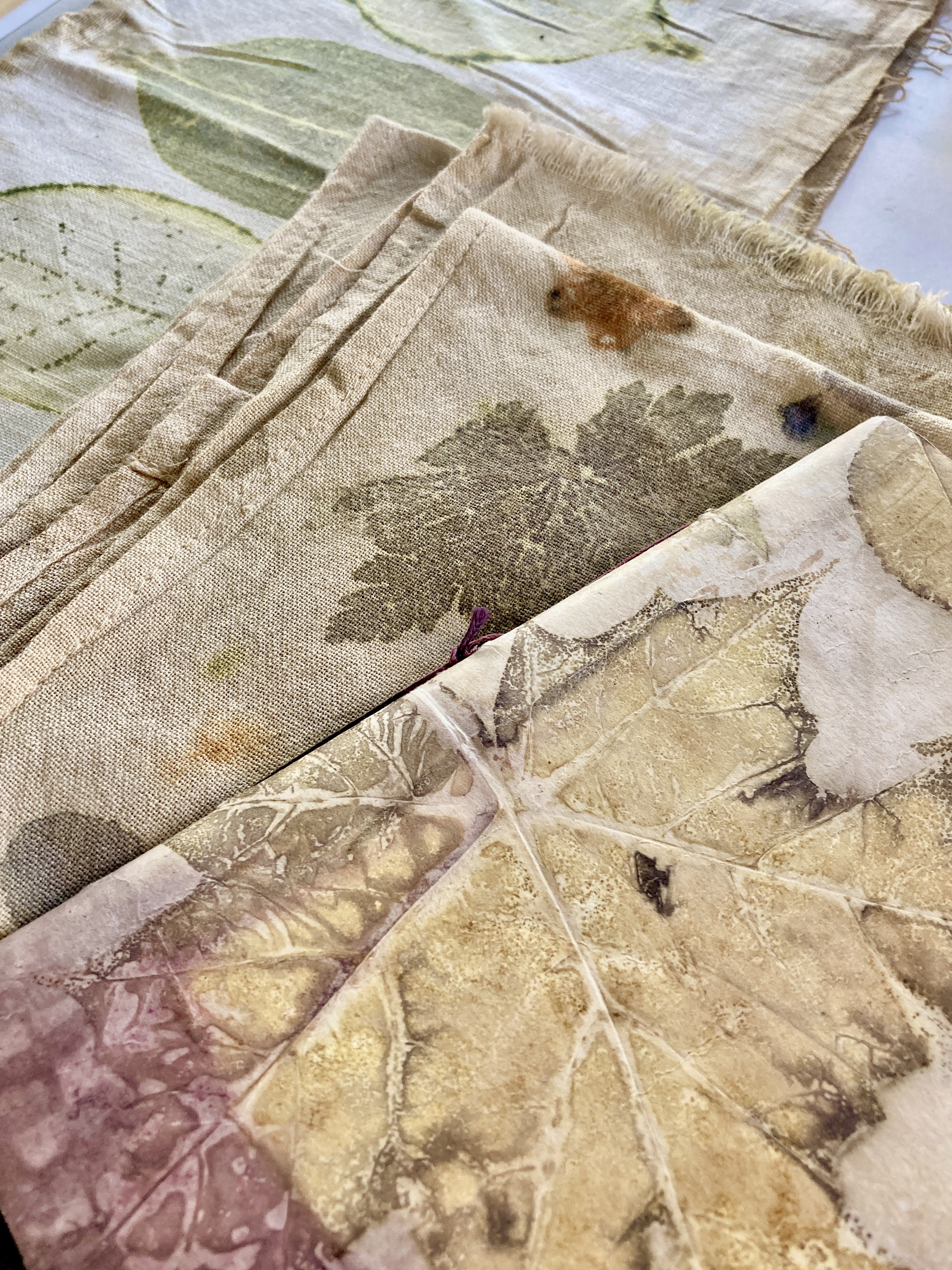 This workshop is perfect for both beginners and those looking to refine or advance their printmaking techniques. On the day you will have delightful fun experimenting first on paper as we gain an understanding of the process. You will use steam and cook the fabrics, extracting and sealing the alchemic colours from the plant materials. You’ll work to identify ‘perfect printers‘ and discuss how you might choose to record your experiments so that you can achieve stunning results at home too.