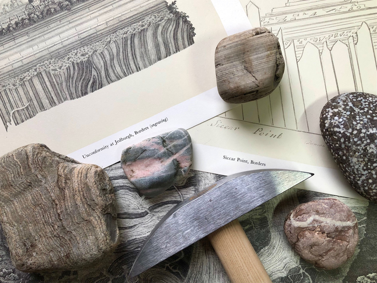 A unique 4-day mosaic workshop inspired by geology, co-tutored by Joanna Kessel and Helen Bodycomb, designed specifically for James Hutton’s celebratory anniversary. Whilst the workshop is inspired by geology they have designed it to be an exciting creative exploration suitable for all levels of experience. Participants will be encouraged to develop creative designs informed by marks, colours and patterns found in stone as well as the irregular lines and striations of unconformity and intrusions illustrated in the geological prints by John Clerk of Eldin.