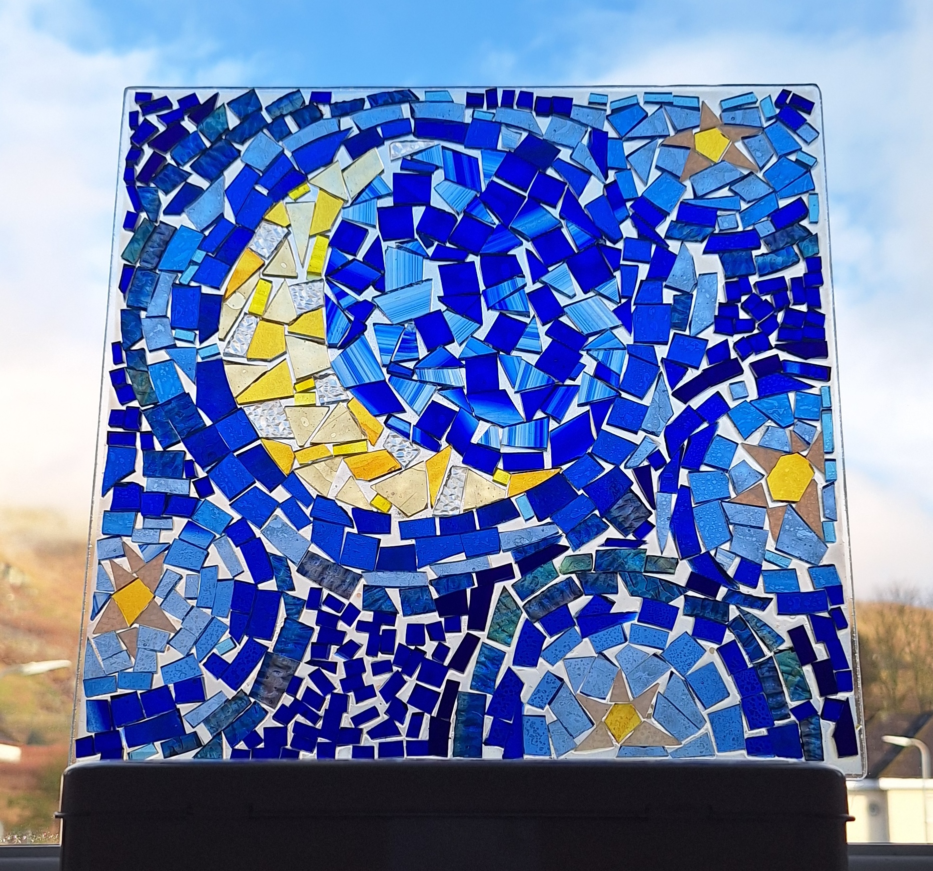 During the day, participants will create a small glass-on-glass mosaic suncatcher, complete with a hanging chain, ready to take home at the end of the workshop.