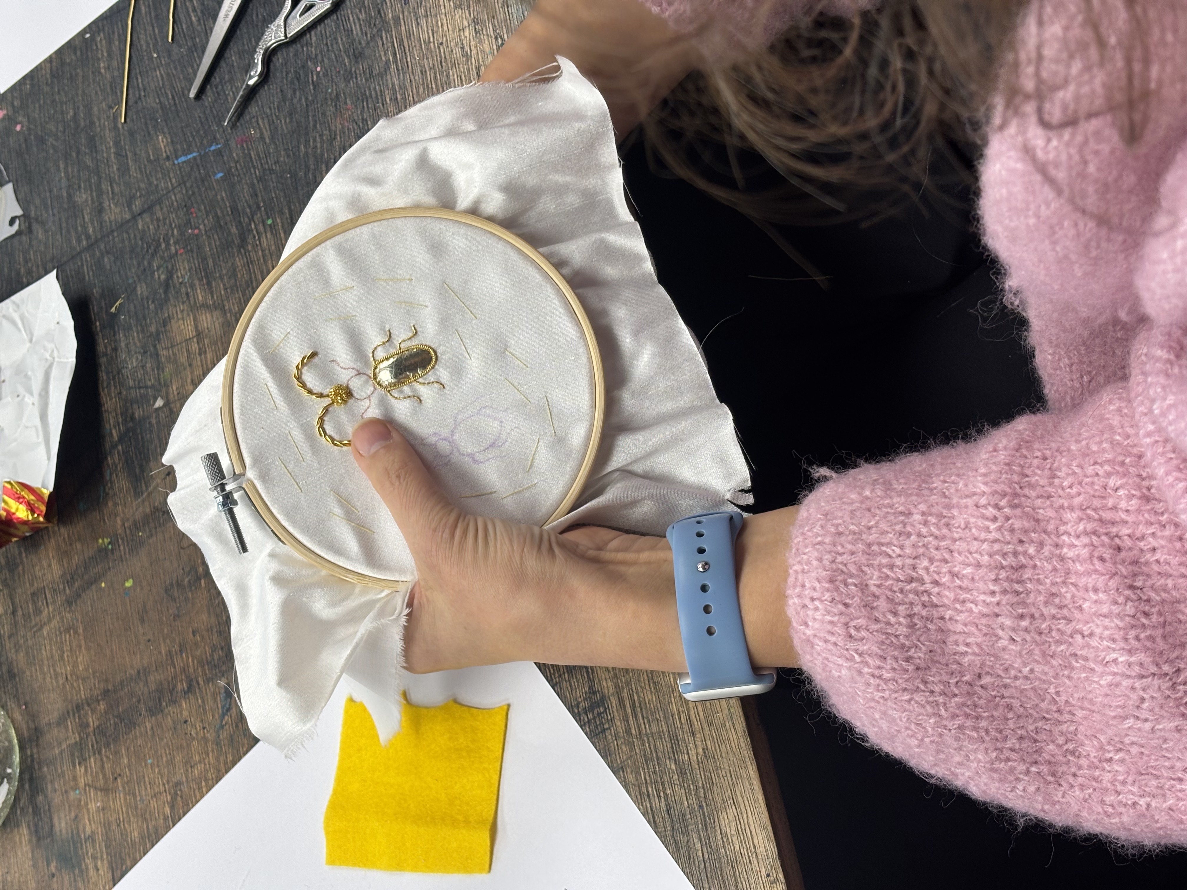 A special extended two-day workshop learning intricate metallic stitching using the heritage embroidery techniques of Goldworking.