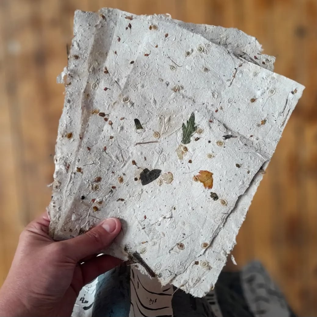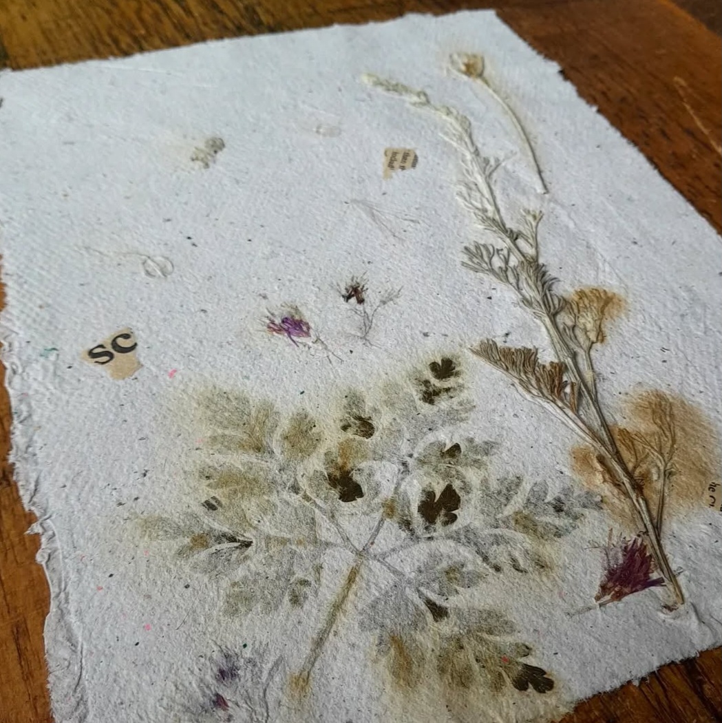 You’ll begin by learning the basics of papermaking, experimenting with pulps, colours and textures to understand how different fibres behave. As the session progresses, you’ll have the chance to personalise your creations by embedding words, seeds, petals and pressed botanicals into the sheets – producing delicate, tactile papers. Your finished collection will be perfect for bookbinding, collage or printmaking.