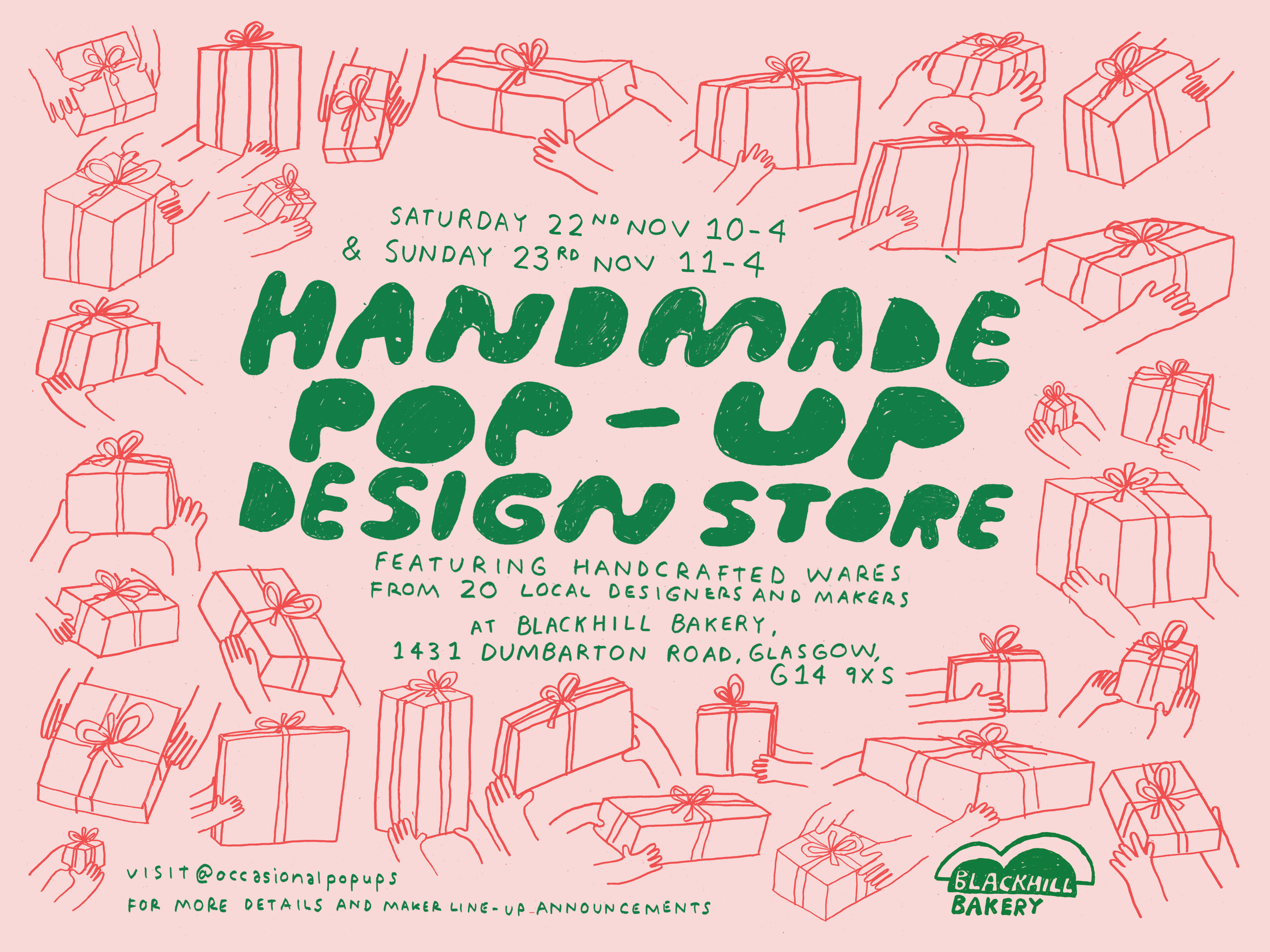 A festive Pop Up Design Store at Blackhill Bakery in Scotstoun. You'll find a specially curated assortment of gifts and homewares, all handcrafted by local artists, makers, and designers.