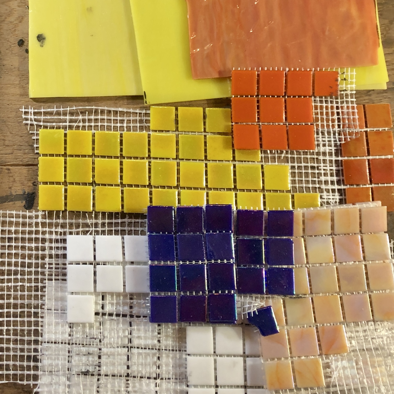 In this full-day workshop, you’ll create a mosaic garden stake, suitable for outdoors all year round, personalised with the colours and materials you choose. You’ll work with glass, tiles, bone china, and other mosaic materials to create a unique stake. The finished size of the mosaicked part will be 30-40cm high x 10cm wide. Tutor Rhona will guide you step-by-step, helping you build on your skills as you plan and assemble your design. During the workshop, you’ll learn about materials suitable for exterior mosaics, techniques for cutting glass, tiles, bone china, and how to use tile adhesive. It is beneficial if you have some prior experience with mosaics or glass cutting, but beginners are welcome too.