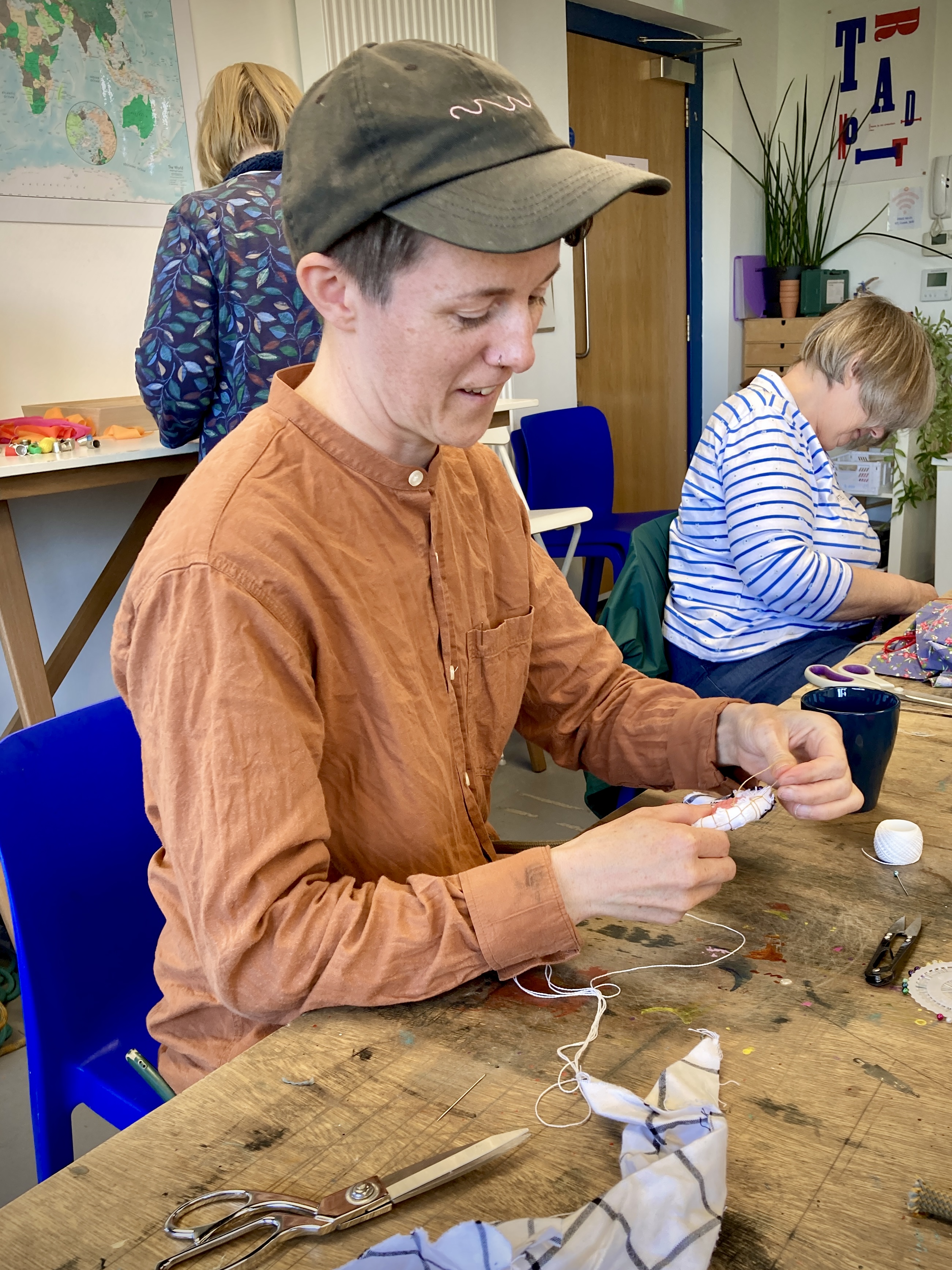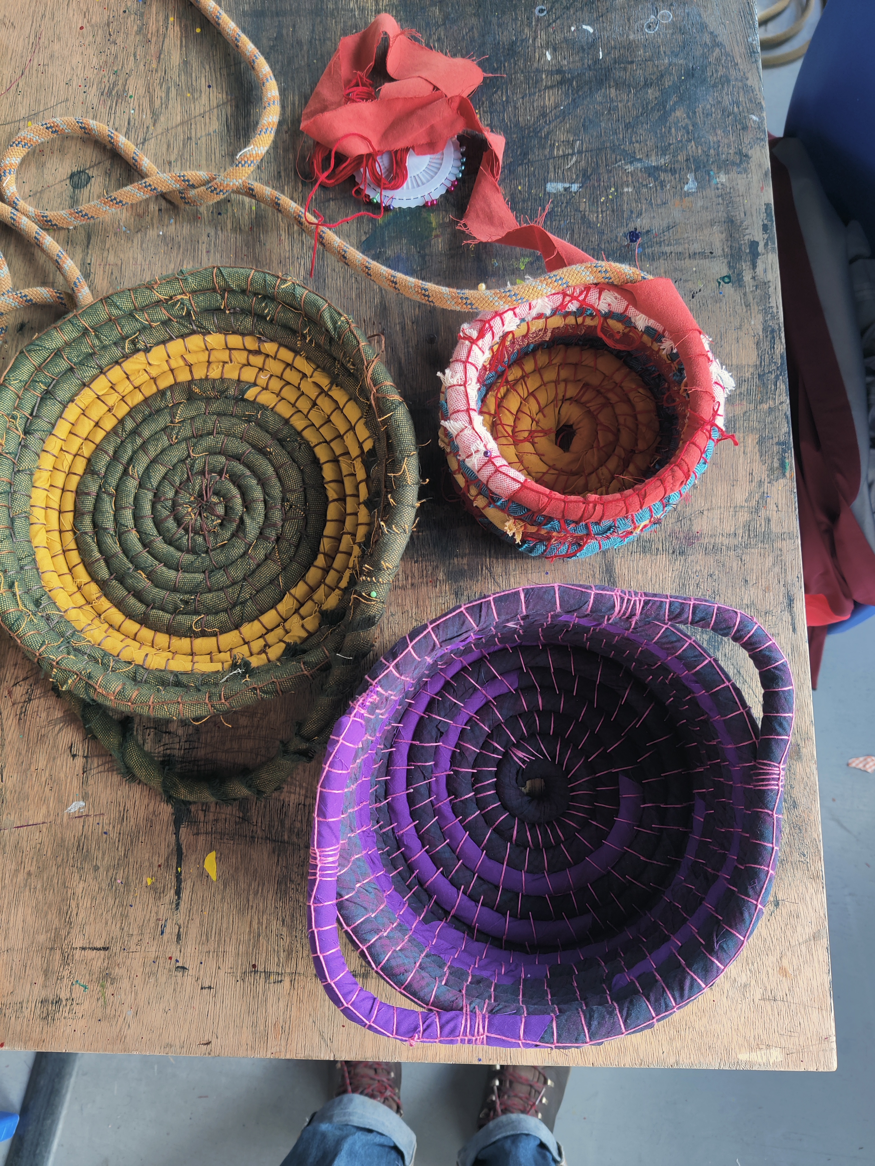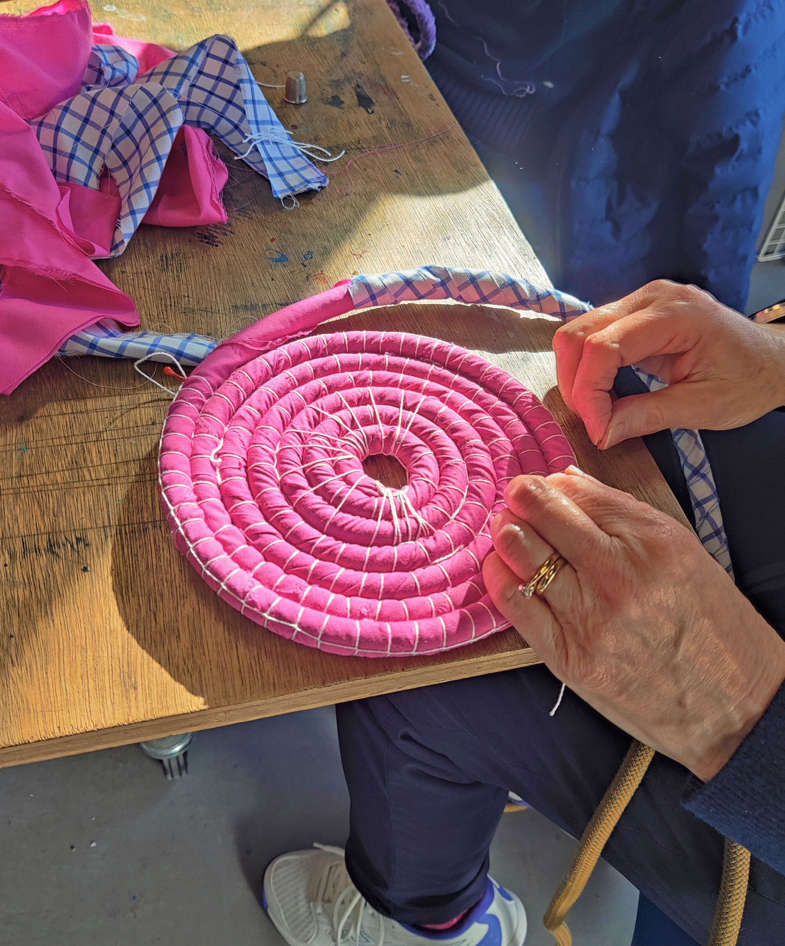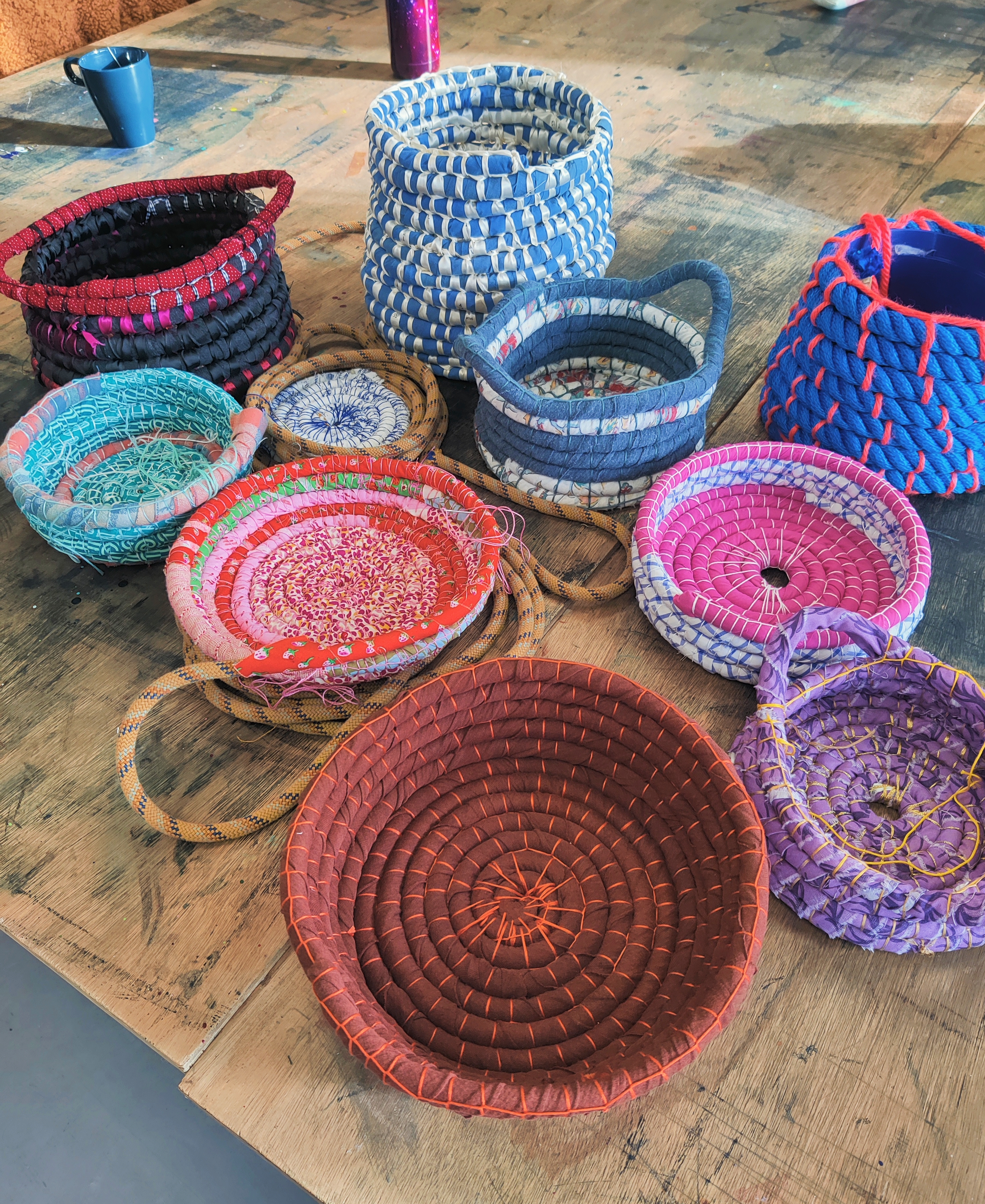 An innovative sustainable crafting workshop using scrap textiles to create Upcycled Fabric Baskets.