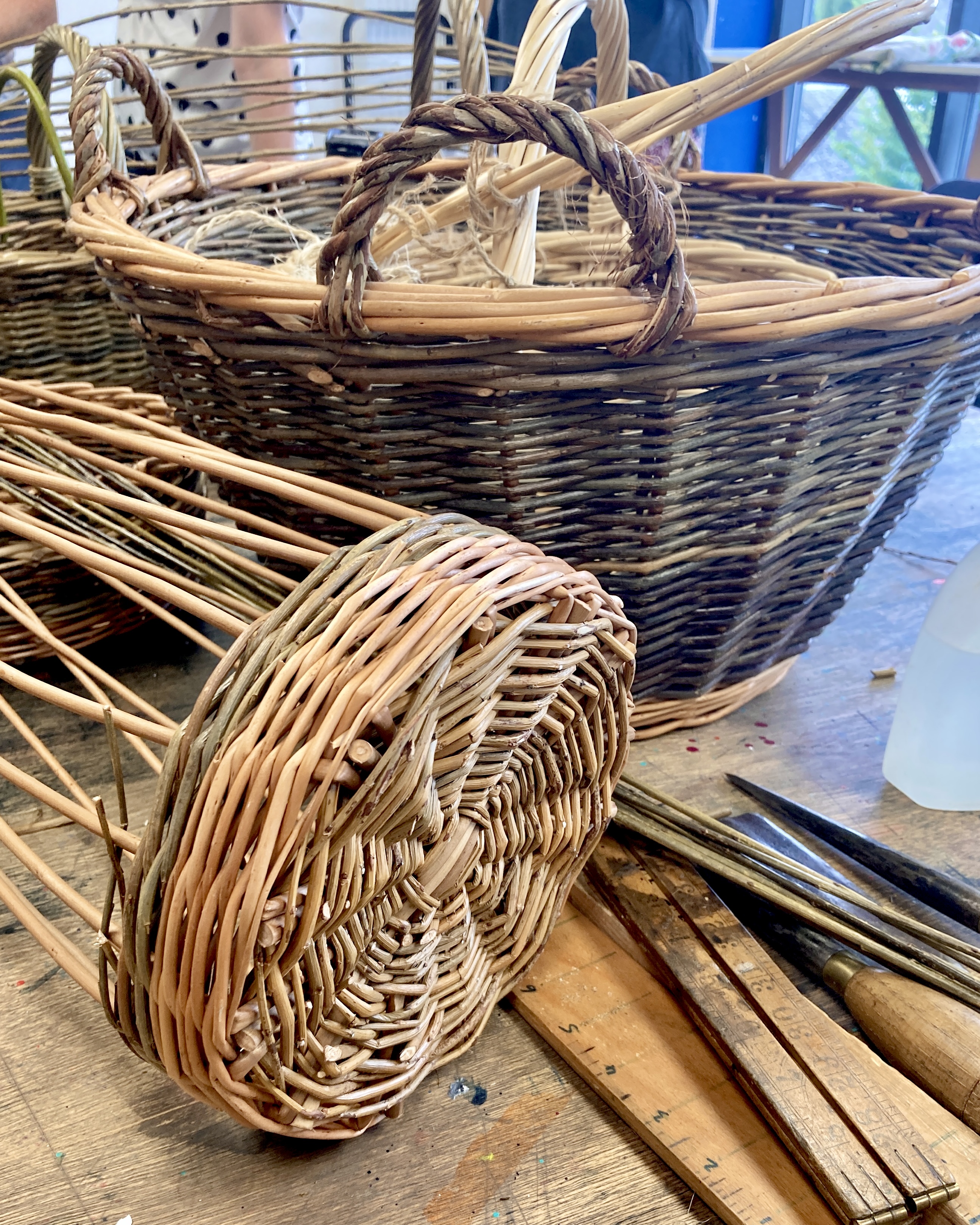 Join master basket weaver Anna Liebmann for four fun and sociable days of Willow Basketry Summer School and create a selection of willow masterpieces. With Anna’s expert help you will learn all the fundamental techniques of stake and strand basketry, first completing a fruit basket then moving on to larger circular work such as a traditional willow shopping basket, kindling basket, etc. We will work on understanding the structure of baskets, and practise selecting the correct grade of willow for each part of the basket, using Scottish and English grown willows. Techniques taught will include tying the slath, pairing weave, joins, staking up, pull down wale or foot border, three rod waling, randing, trac or rod border, making a handle bow and handle wrapping. This will be a skill packed week of willow basketry!